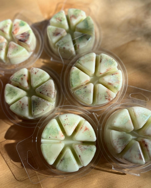 Each of our candles and wax melts are hand poured with coconut soy wax that is clean burning, biodegradable, natural, and made in the USA. The clean oils used to scent our candles and wax melts are infused with essential oils and always free of phthalates, carcinogens, parabens, mutagens, and allergens.